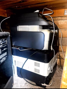 Laserdrucker und Scanner offen, dem Dreck ausgeliefert.