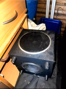 Das Lautsprechersystem – beschädigt und verdreckt.