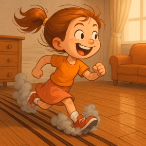 Ich generierte ihr ein Foto eines kleinen Mädchens, das Spurrillen in den Fußboden läuft – und wir mussten beide schallend lachen.