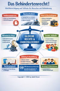 - Es regelt Teilhabe, Barrierefreiheit, Nachteilsausgleiche, Assistenzleistungen und Hilfsmittelversorgung.